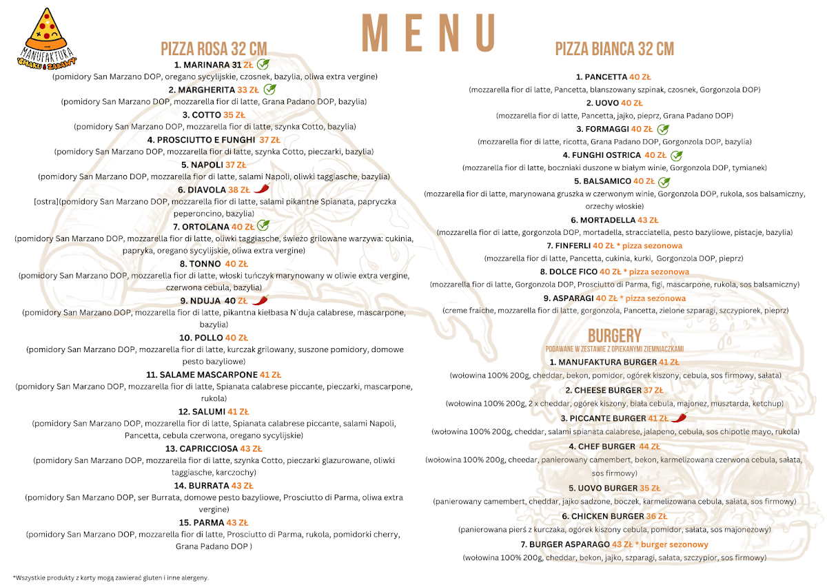 The menu at Manufaktura Smaku I Zabawy at Nowy Goniwilk 14 impresses with a careful balance of creativity and classic comfort. Each dish reflects thoughtful preparation and attention to flavor, from the richly spiced pizzas to the hearty mains. The standout Diavola perfectly exemplifies this, offering a bold combination of spicy salami and melted cheese that delivers both intensity and satisfaction without overwhelming the palate. The pricing feels fair for the quality, making the culinary experience accessible while maintaining a sense of indulgence. Beyond the Diavola, the menu features an array of options that cater to varied tastes, ensuring that both adventurous eaters and those seeking familiar favorites will find something appealing. Overall, the menu demonstrates consistency, flavor depth, and a clear commitment to using quality ingredients, leaving a lasting impression on diners seeking a flavorful and reliably enjoyable meal.